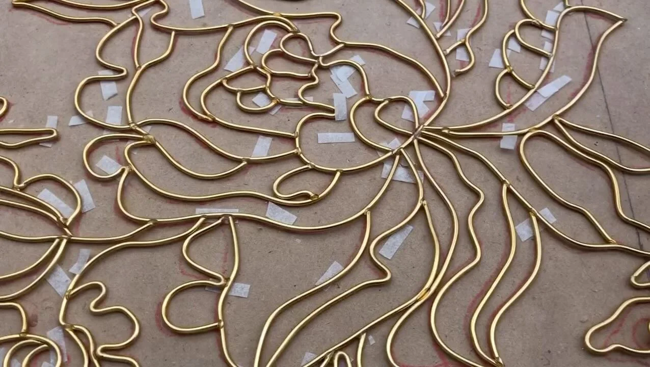 Gold powder stencilling. This centuries old technique is godless. YouTube video of failure as a teaching moment here