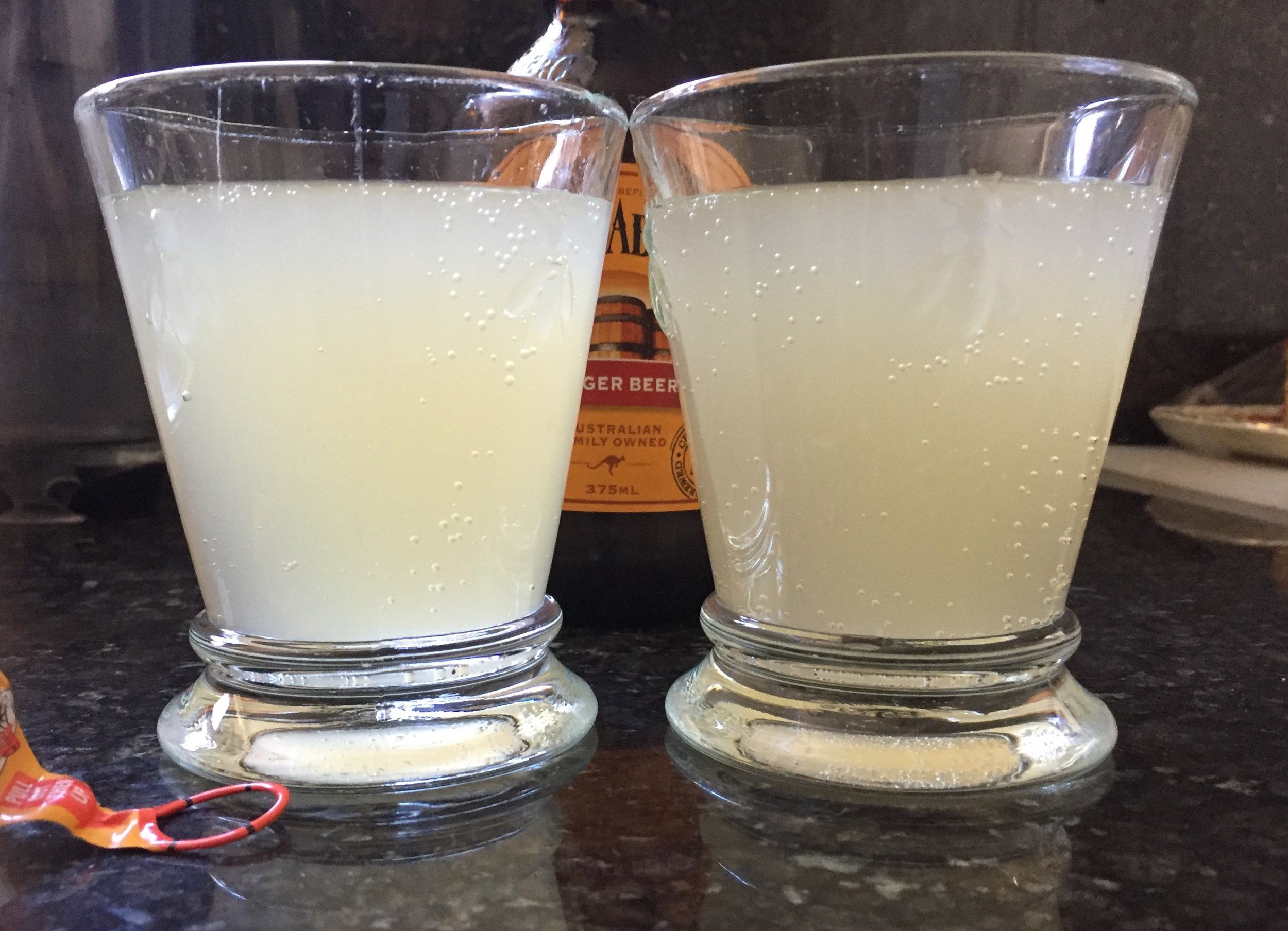 Ginger beer glucose restoration post gym. Its important to measure out EXACT halfsies from one bottle. EXACT halfsies, no more, no less. Not two bottles, ONE BOTTLE, HALFSIES. Ive become really good at doing it & its ok to do it without a measuring cup now, Mr Autism my son