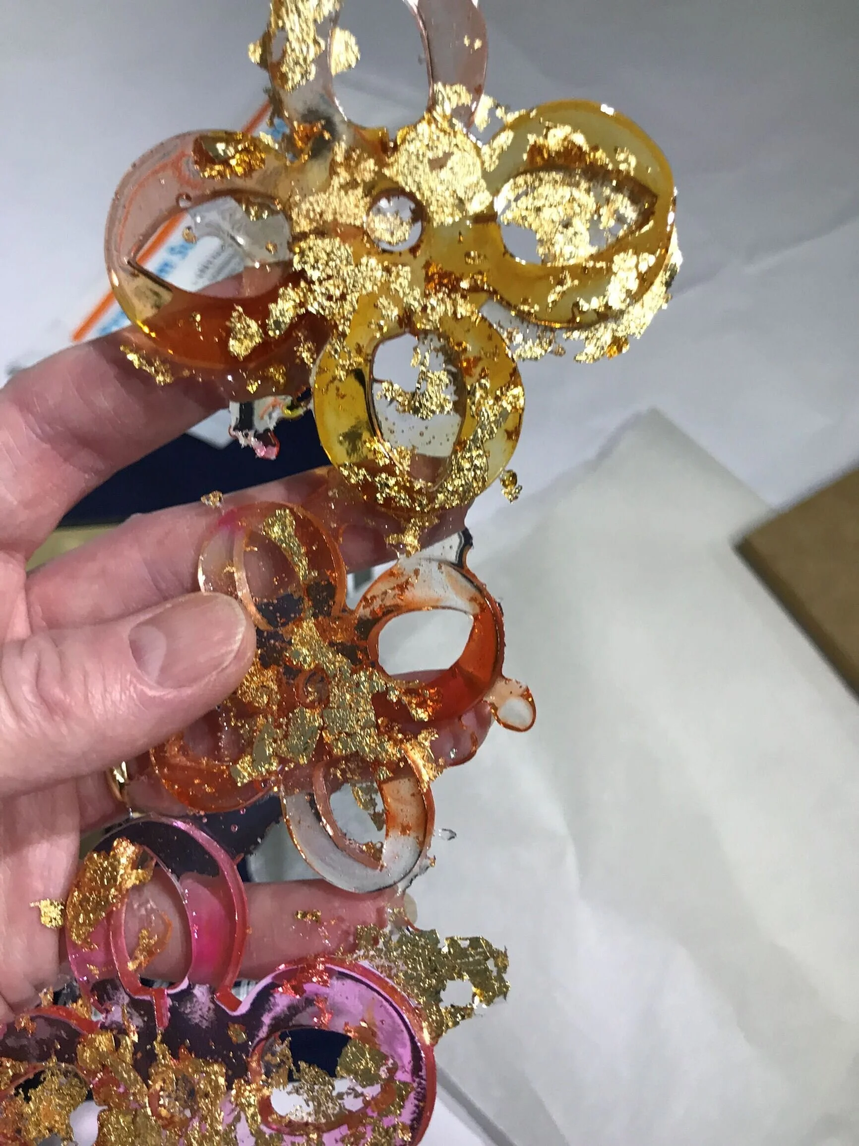 Continuing from whence I came; as previously documented, a friend’s daughter is having a baby so I thought I’d make her a baby-mobile with my cast ornaments, for which I then purchased some anodised aluminium wire. Next thing, making metal lace.