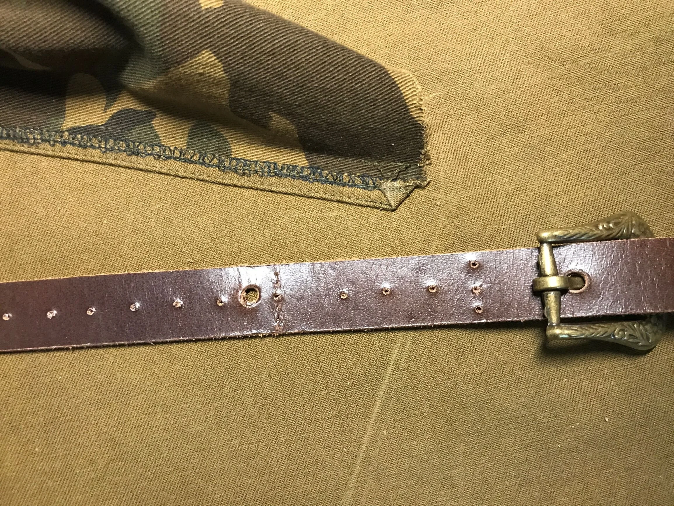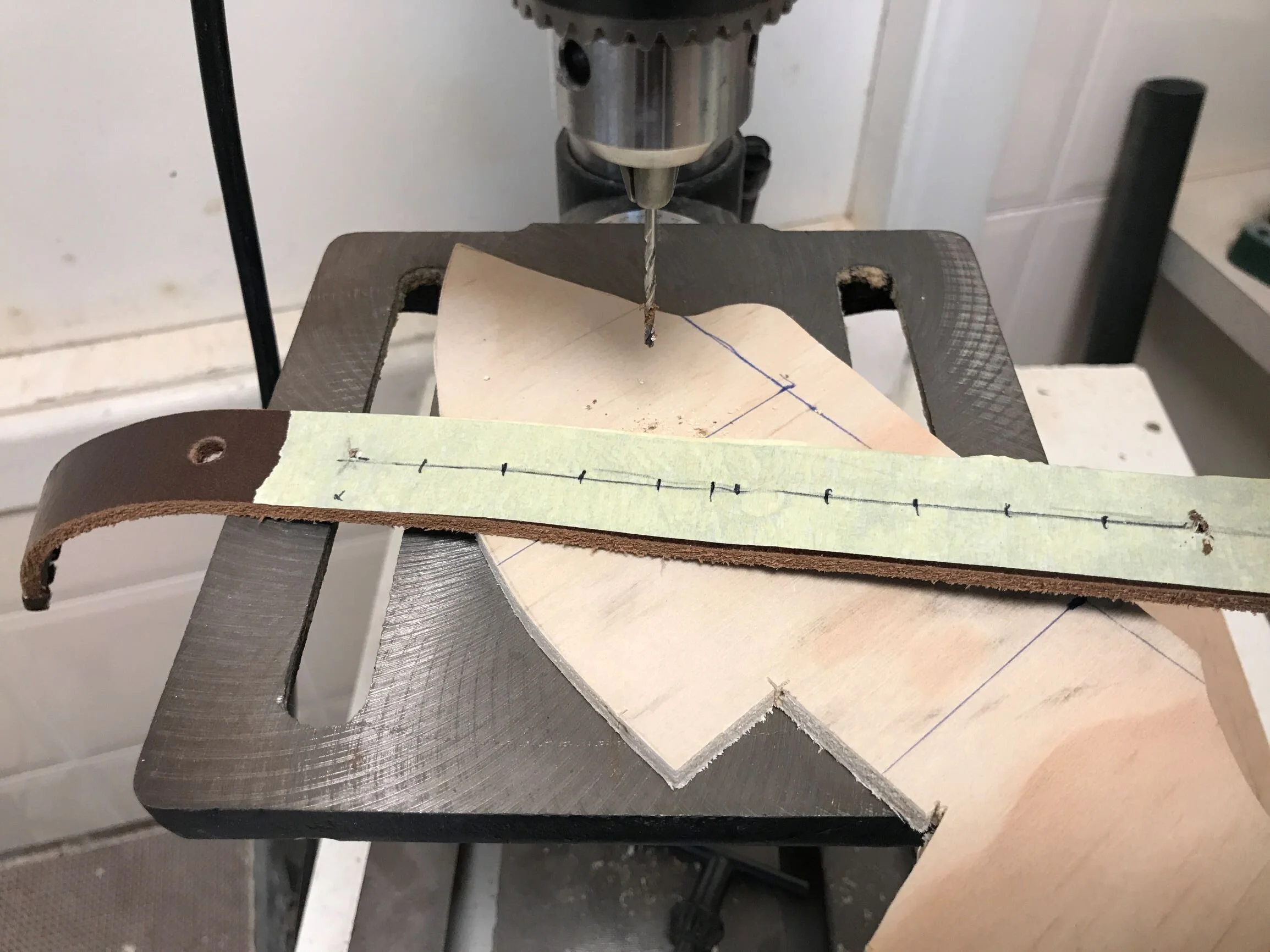I dont have a leather punch but I do have a drill press so thats what happened. A big hole for the buckle tongue and little ones all along for hand stitching.