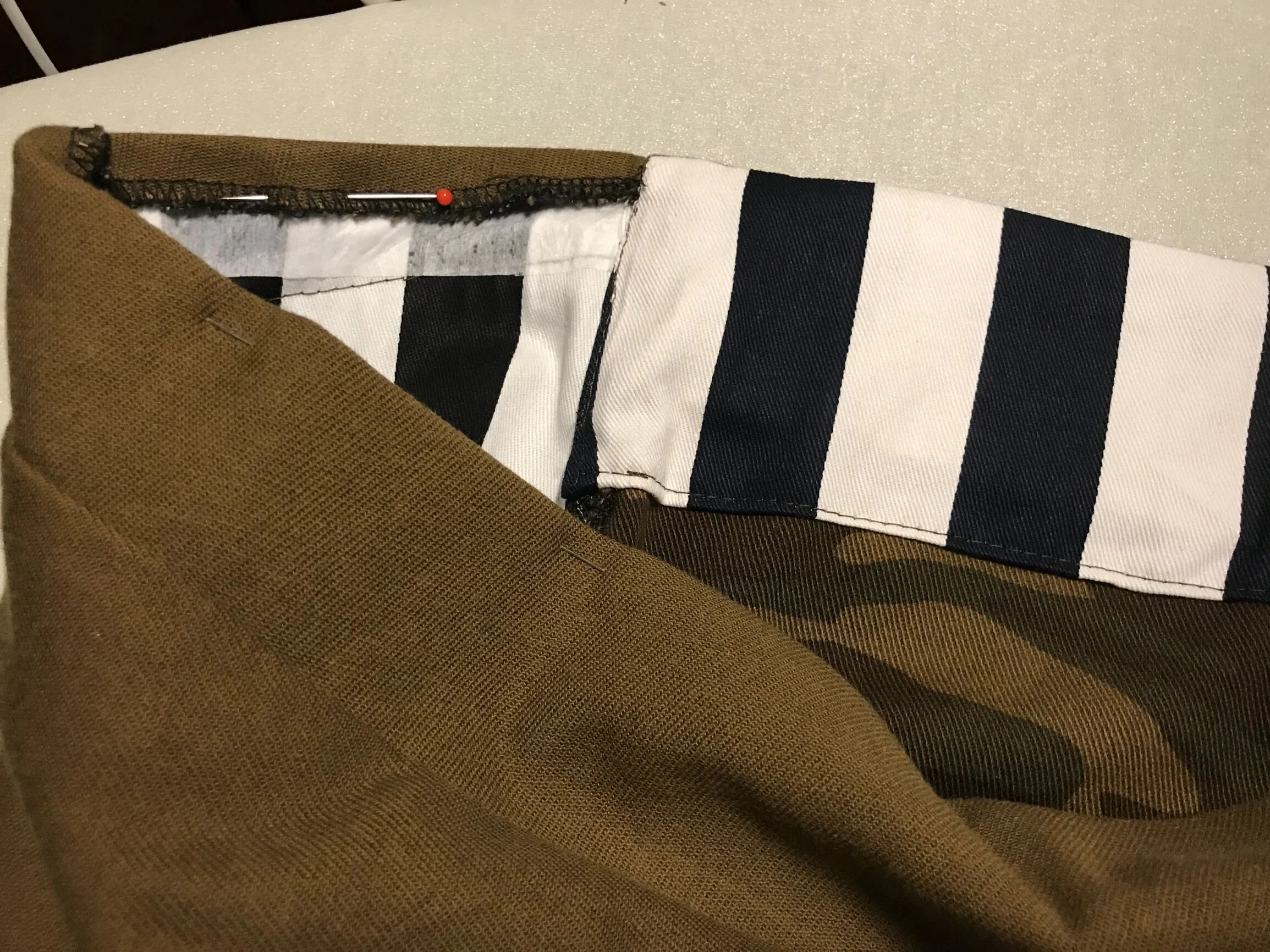 Front waist will be finished with a single turn of the overlocked edge & hand stitched down