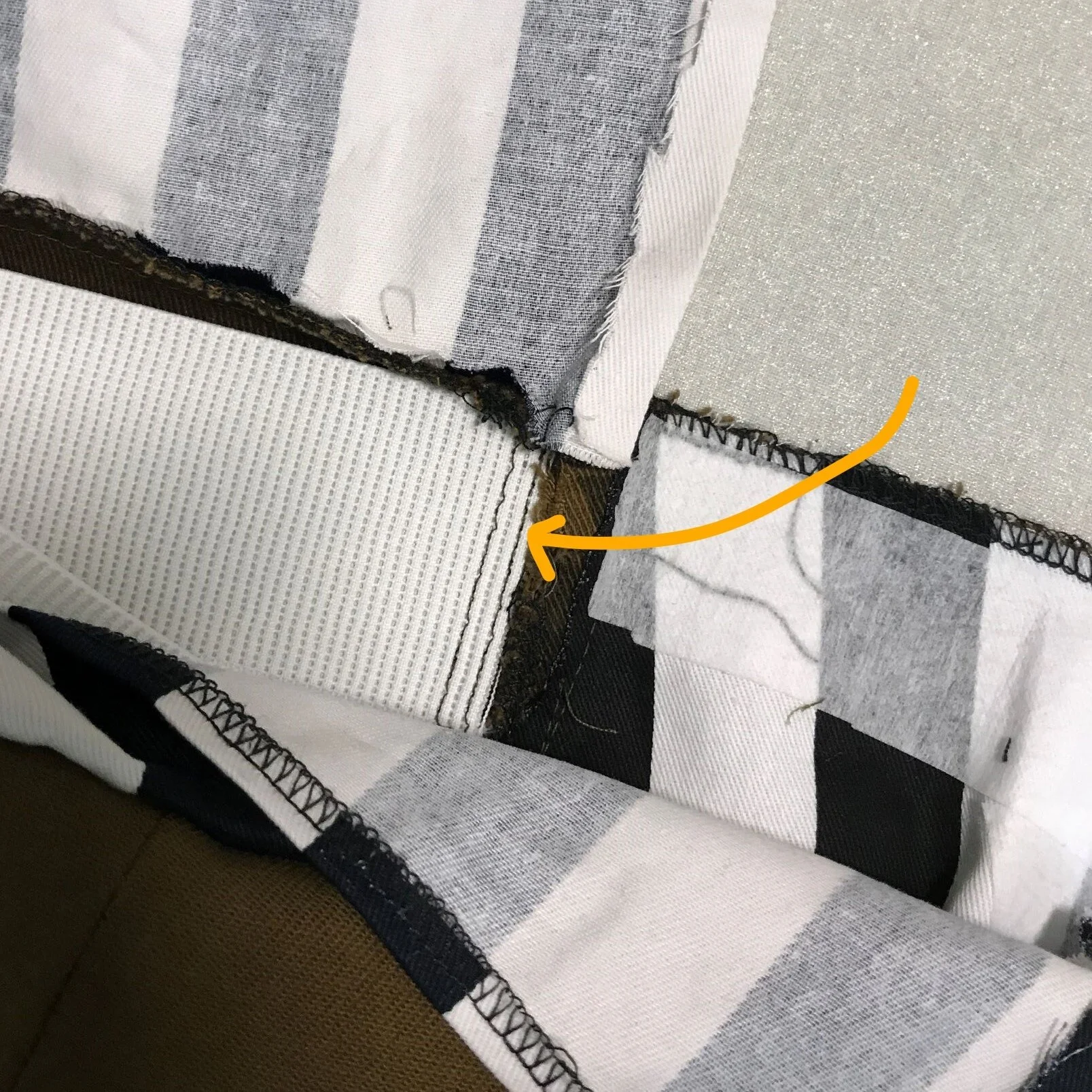 One last try-on revealed that the elastic didnt need to do much tightening so I could easily encase it in the facing without it creating a lot of ruffling/pouchyness in the channel. I stitched it on just outside the side seams to keep the bulkiness down