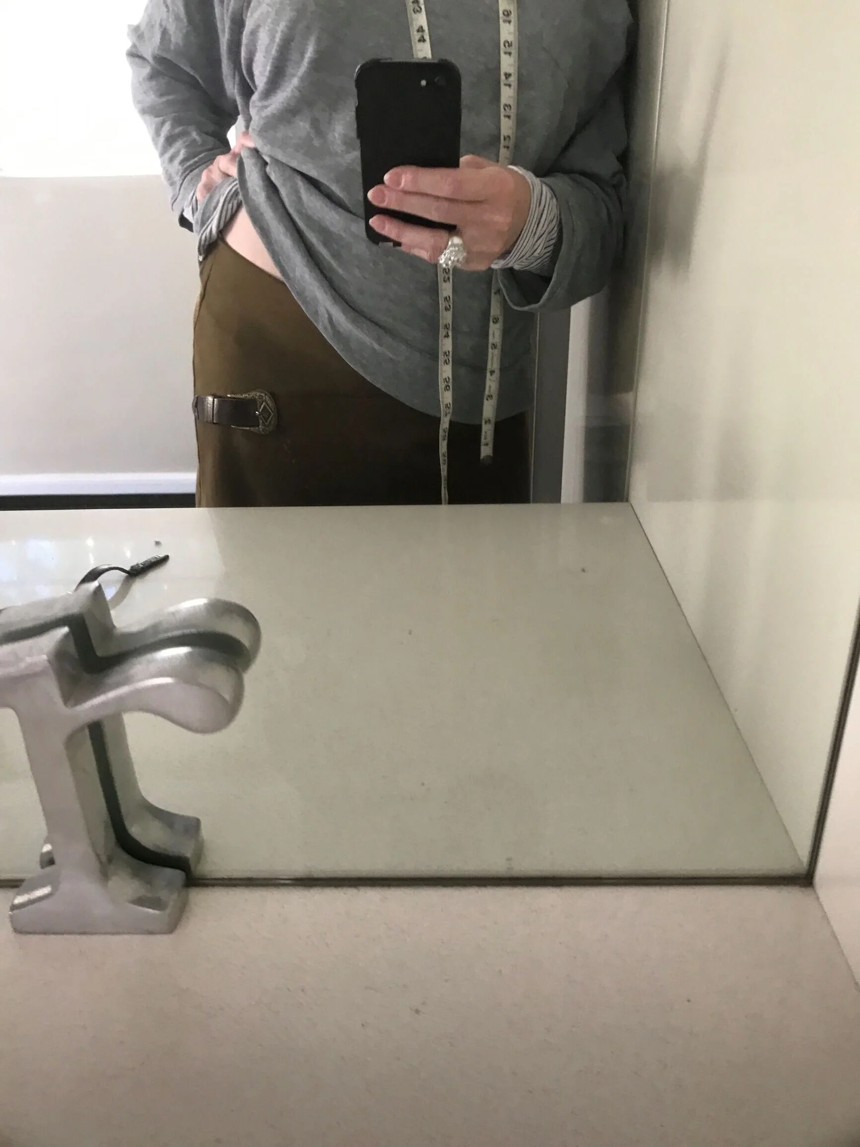 Then, after all that, it came to me: INTERFACING. Its fixed everything! Nothing does rigid like three layers of interfacing. And hopefully it now it should also be a bit of a girdle (girdle!) & minimise belly crease above the belt when worn.