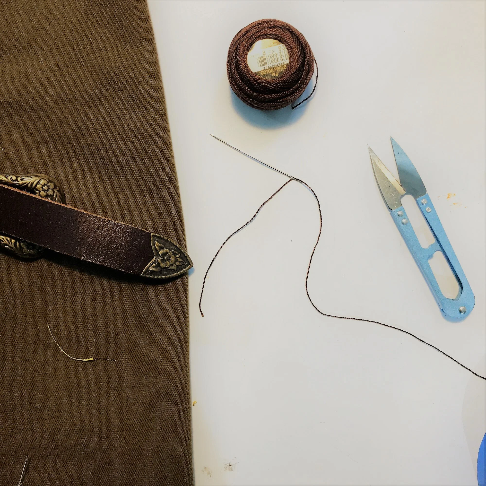 Buckle o’clock! I found it easiest doing this seated at the table with embroidery twist and a long darner needle with a large eye.