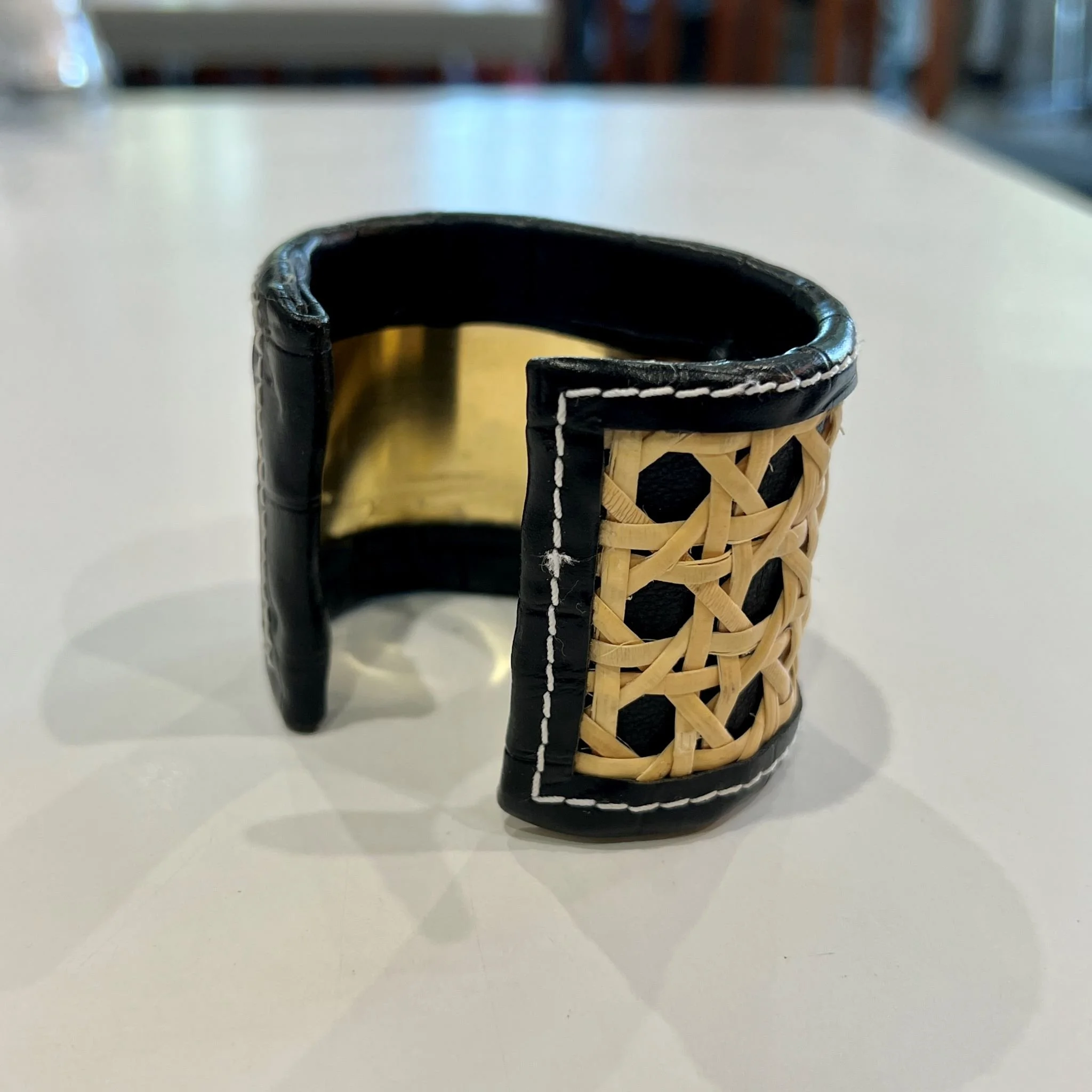 The escutcheon plate from a vintage Singer sewing machine cabinet drawer, never put to better use. Made a mold, poured a cast, gilded that, et voila! Plus bamboo tassels with which I am obsessed. Cast resin cuff, takes a couple of days for the resin harden up enough to demold, so production on these is slower than I’d like at the moment; I have so many ideas to try!