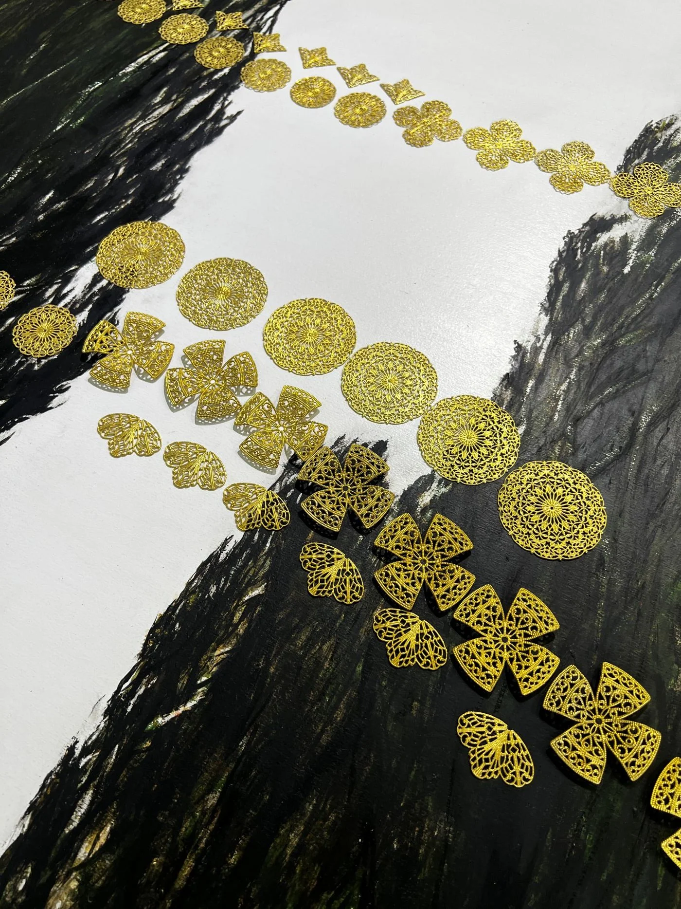 I have some bronze nails to hammer them home but I’m getting a lot of feedback to not apply them at all. I’m a little stuck. God has not communicated how I am to proceed so I wait and time stretches on, which in this way becomes an actual material component in the work. Time.