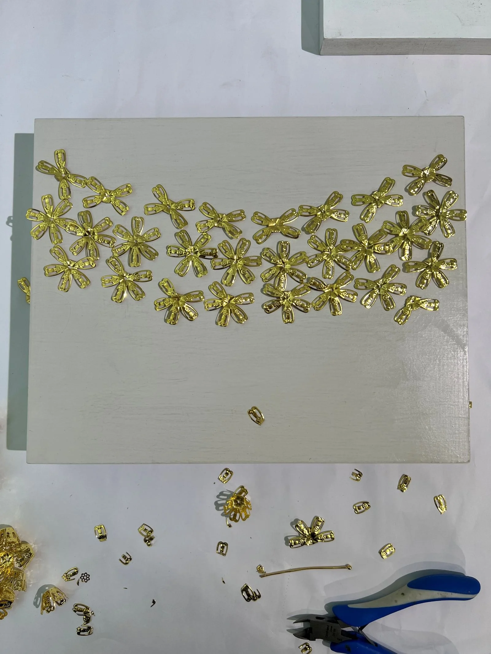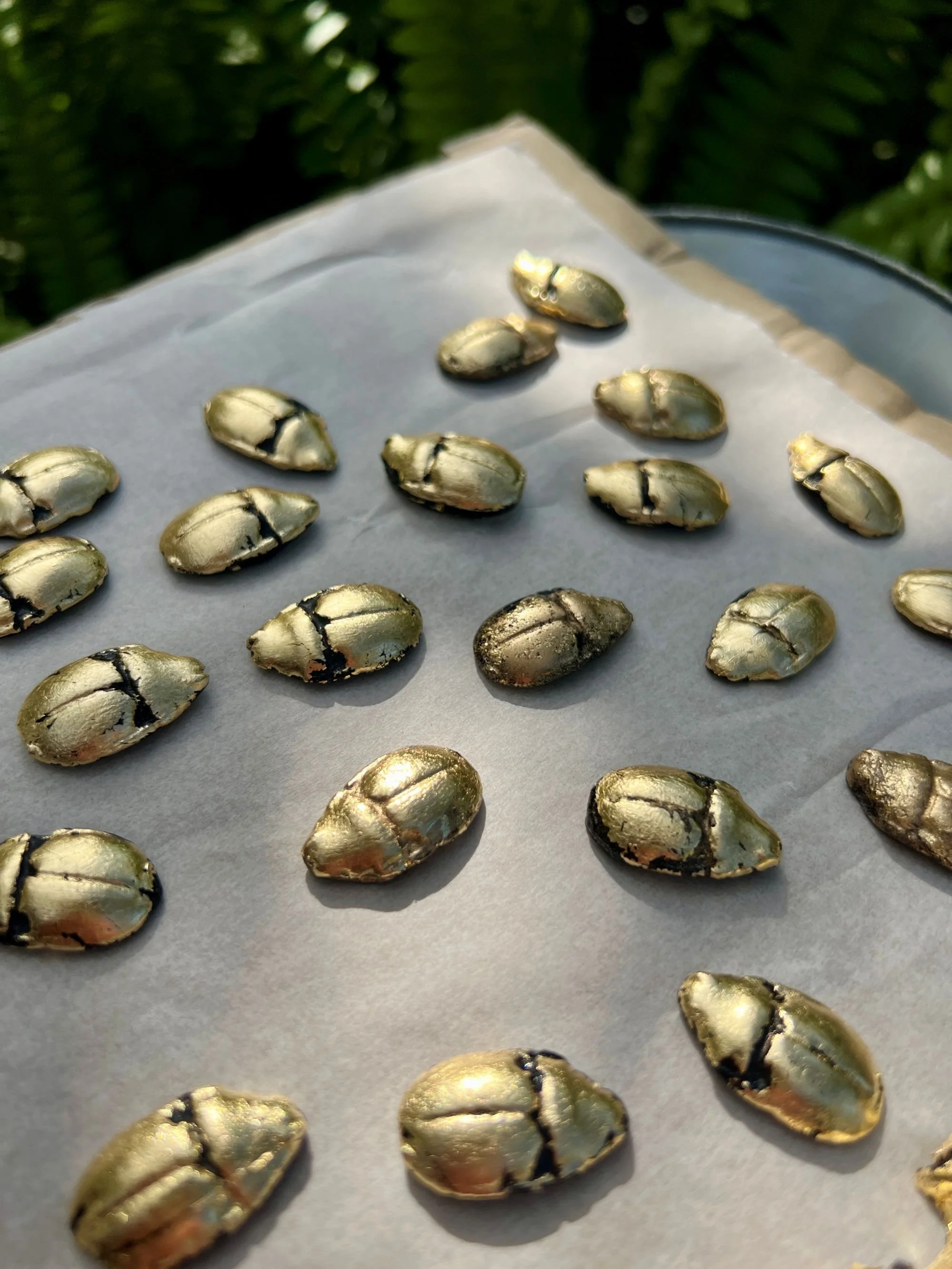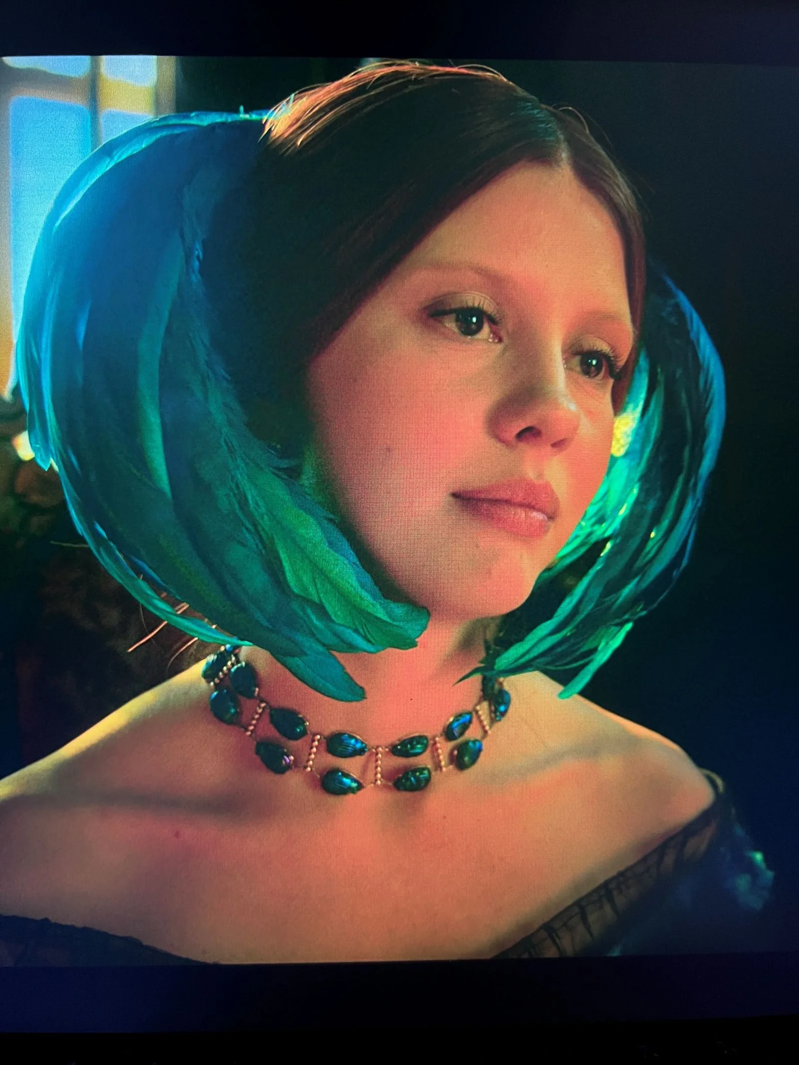 Then I was watching Frankenstein on Netflix and see that Mia Goth is wearing a scarab necklace and then wanted to go to the studio immediately and make a scarab necklace, then immediately make the hair accessories.