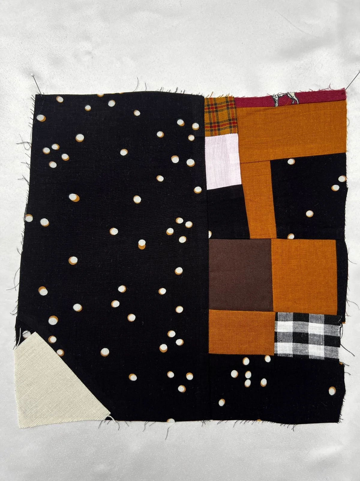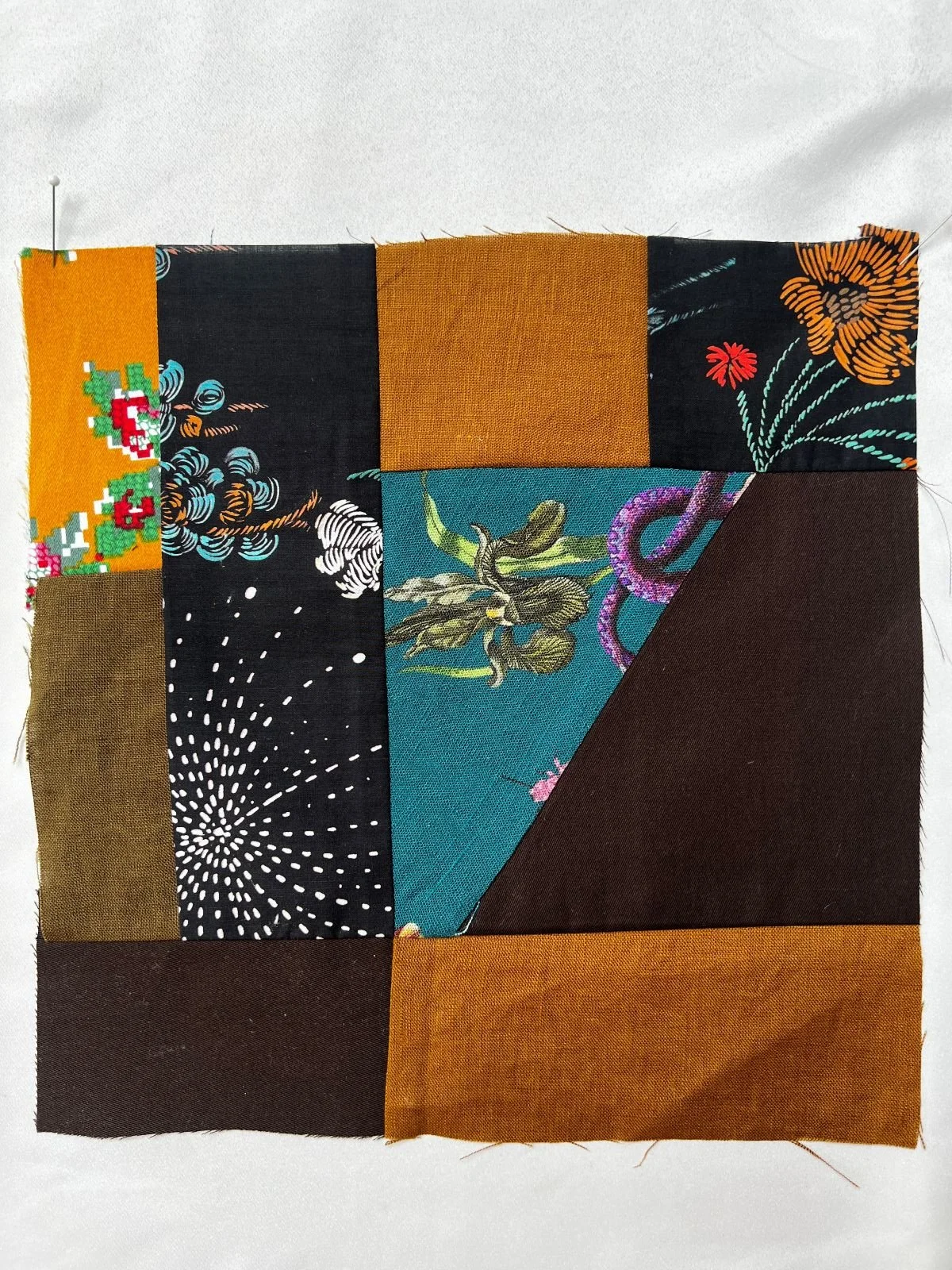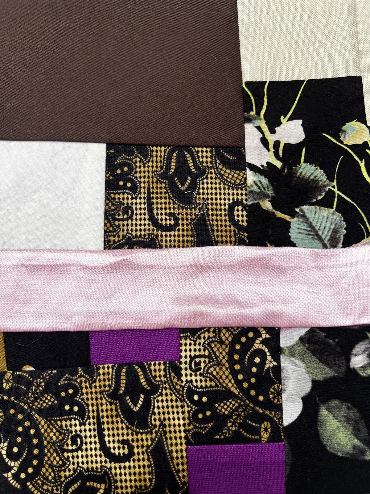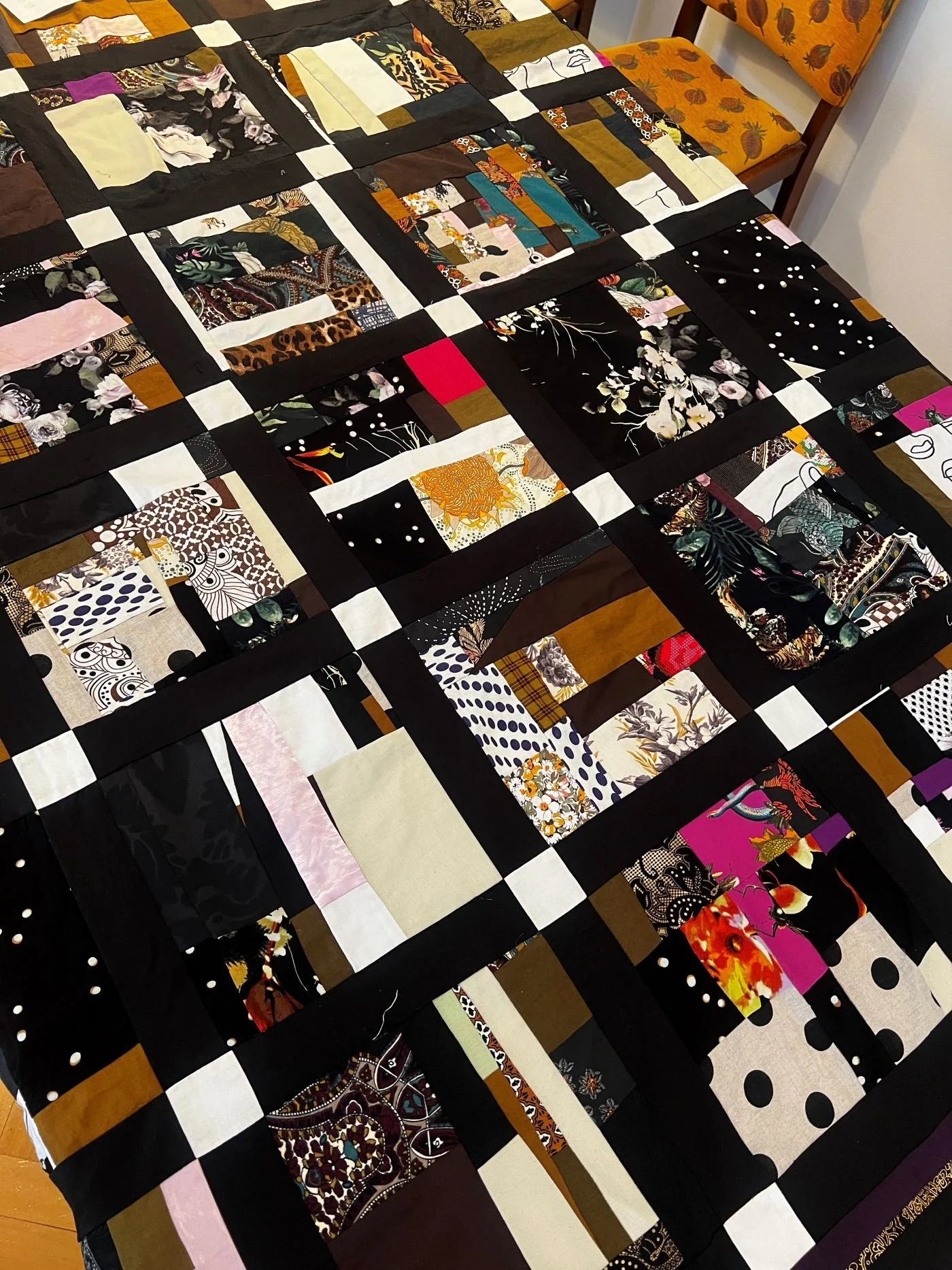 I did black sashes and white cornerstones around/between the blocks and it took DISCIPLINE and looks really good! But have identified I have to replace the hot pink patch in the middle of this one.