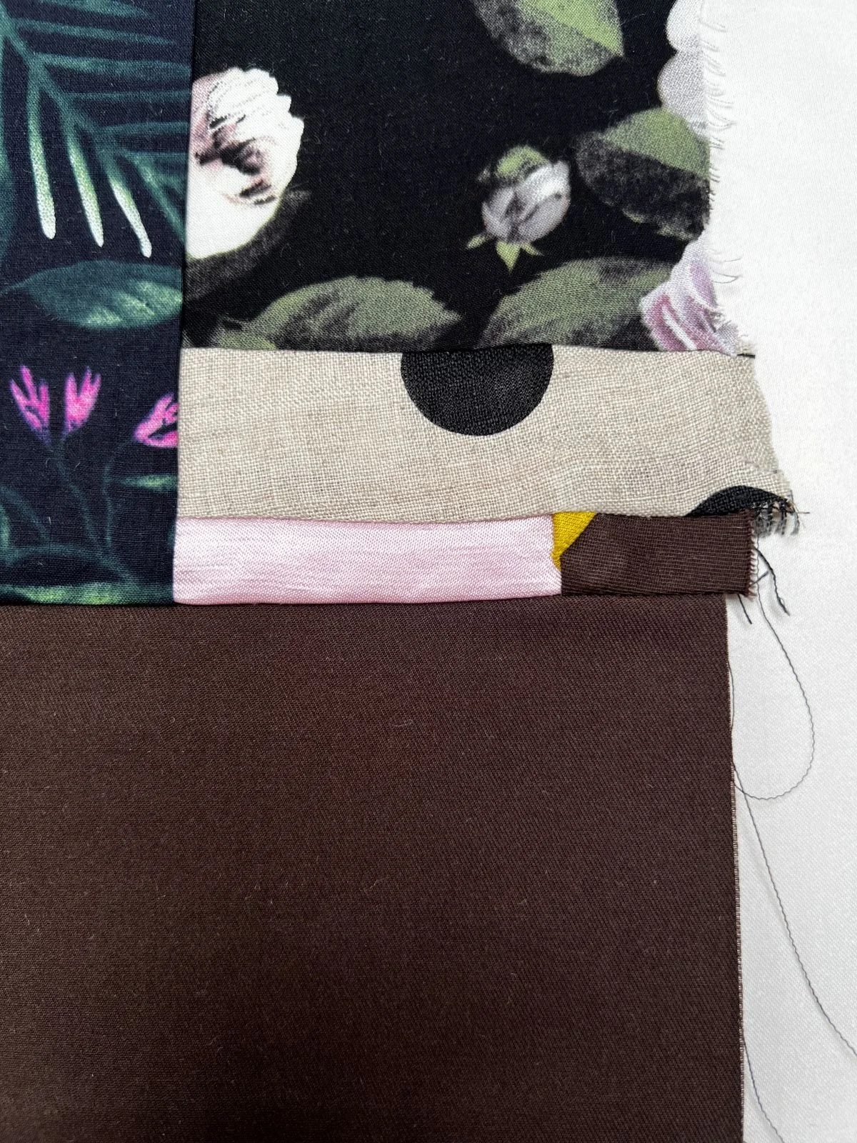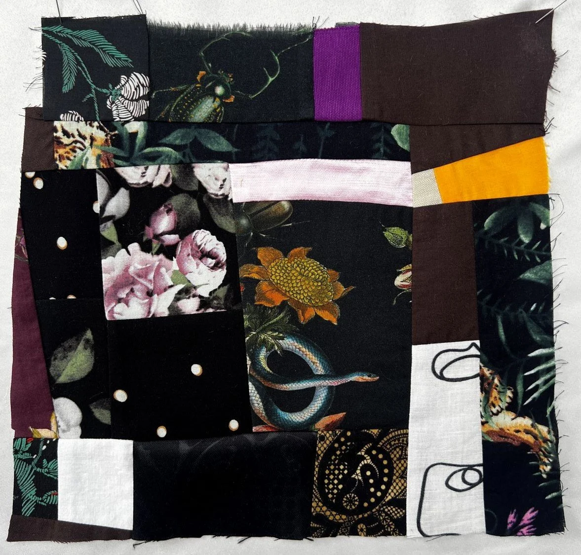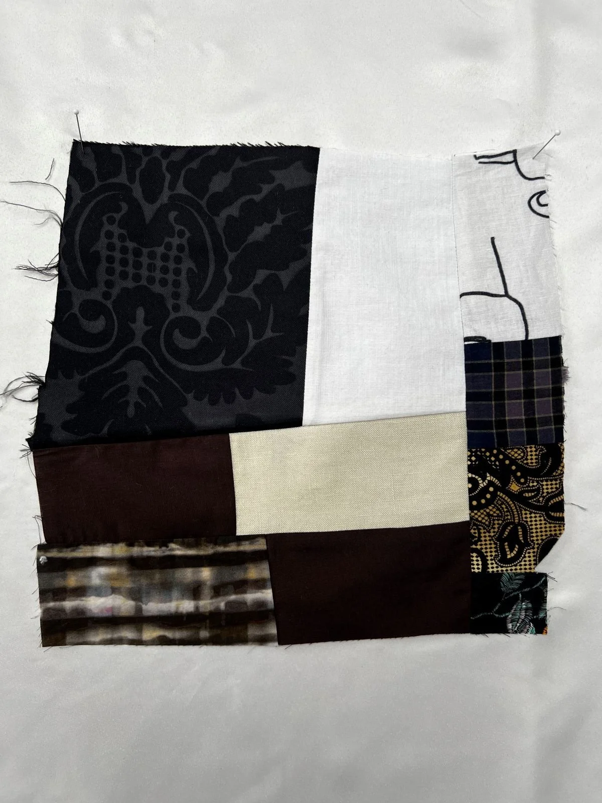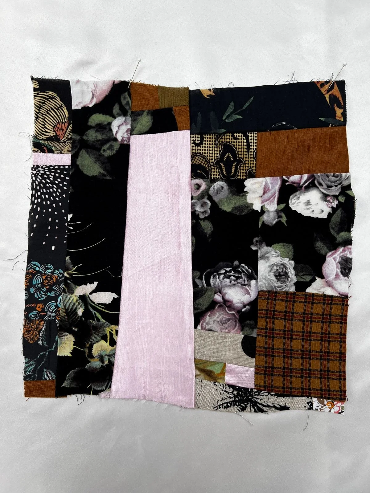 I did black sashes and white cornerstones around/between the blocks and it took DISCIPLINE and looks really good! But have identified I have to replace the hot pink patch in the middle of this one.