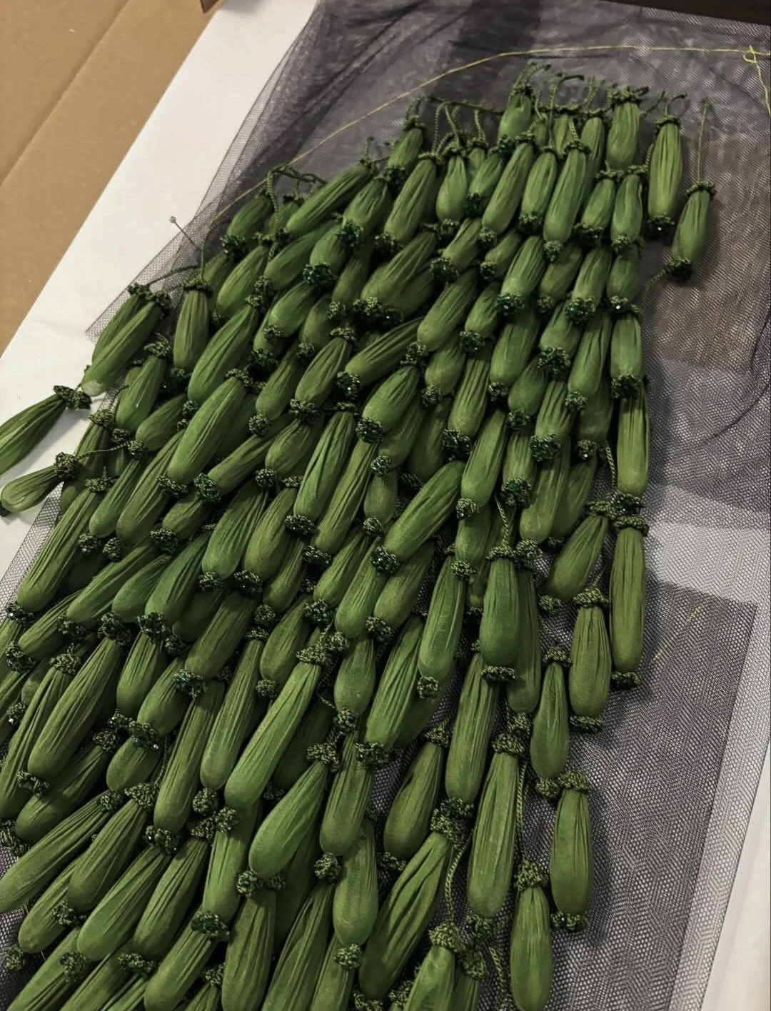 Nearly lost my mind over this dress at Dior. Making some of those darling frond-like or seed-pod tube things is now on my action list and you know I make good on such plans. Have to say I’m not really into dresses (separates=creative variables), but making this as a top, in what looks like a jacquard/embroidered silk and that soft floppy bow with those fronds? …