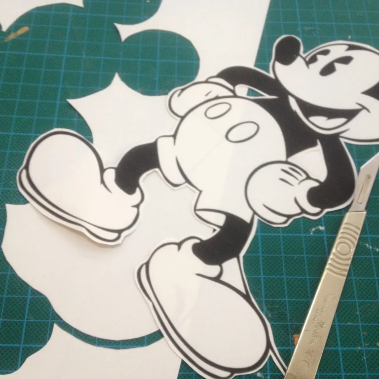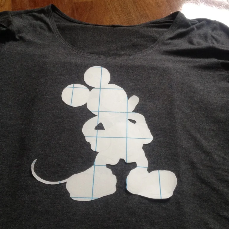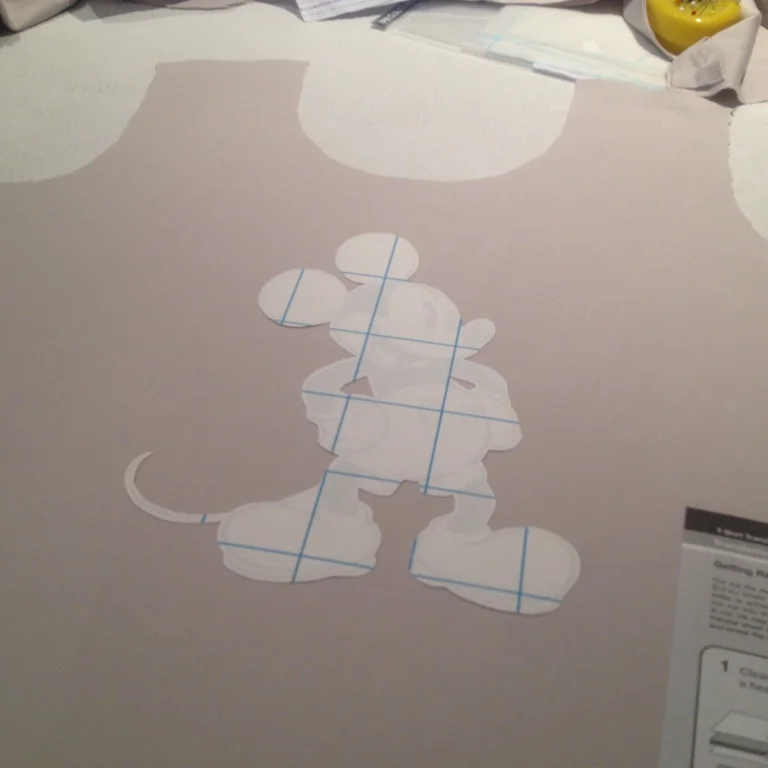 For the print iron-on transfer method, cut out around the image close to the outlines then lay the t-shirt down flat, smoothing out the wrinkles & decide where you want to place Mr Mouse. (Don't forget to mirror print if needed.)