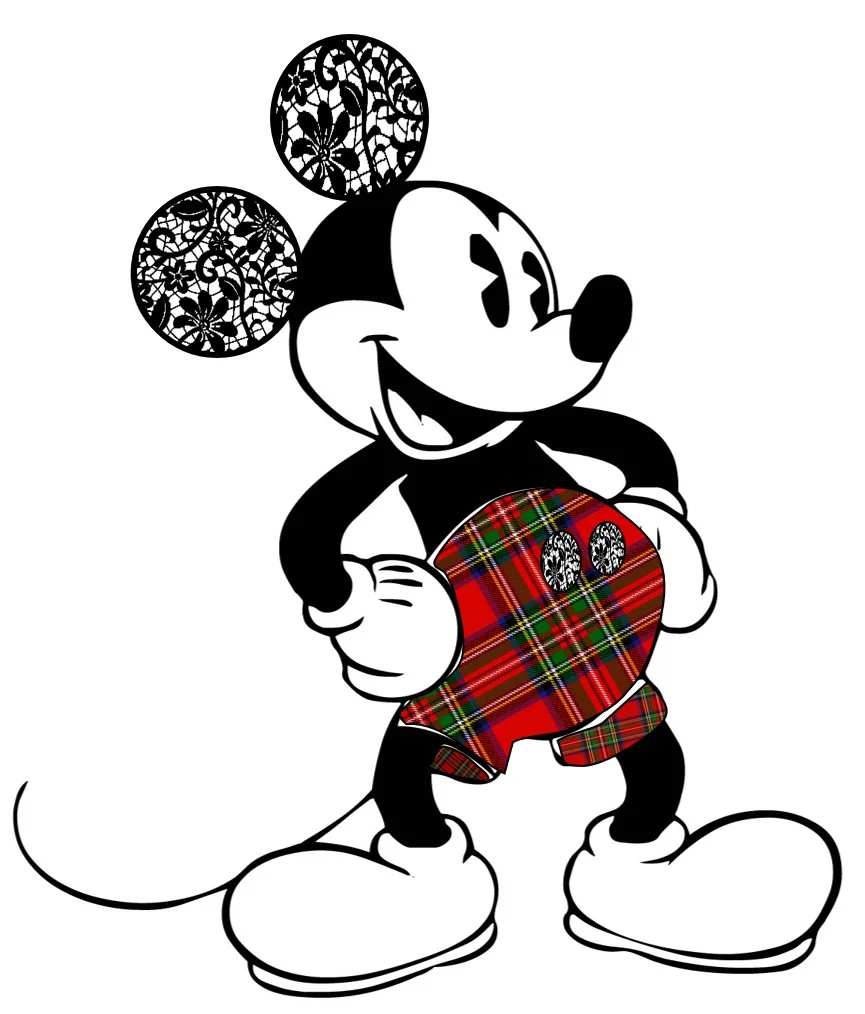 I came across many, many images of Mickey Mouse shirts in fashion - see a whole load in one article, here - but none, like NONE of him with lace ears which continues to amaze me. Then I had this GENIUS idea: doily ears, yeah!
